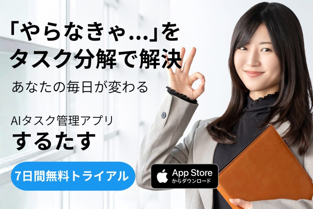 ぜひ一度、AIタスク管理アプリ『するたす』を試して、タスク分解を簡単で快適な習慣にしましょう。